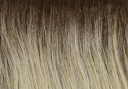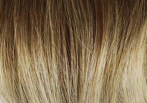 The hair is dyed in a long gradient, showcasing chic styles like ombre and balayage